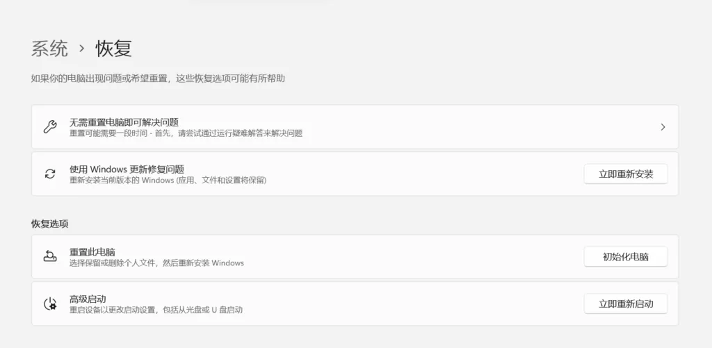进入Windows设置,选中系统-恢复选项卡,选择高级启动后面的重新启动,插入u盘,选择从u盘启动